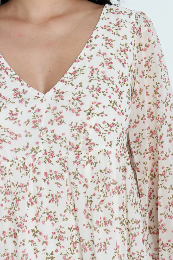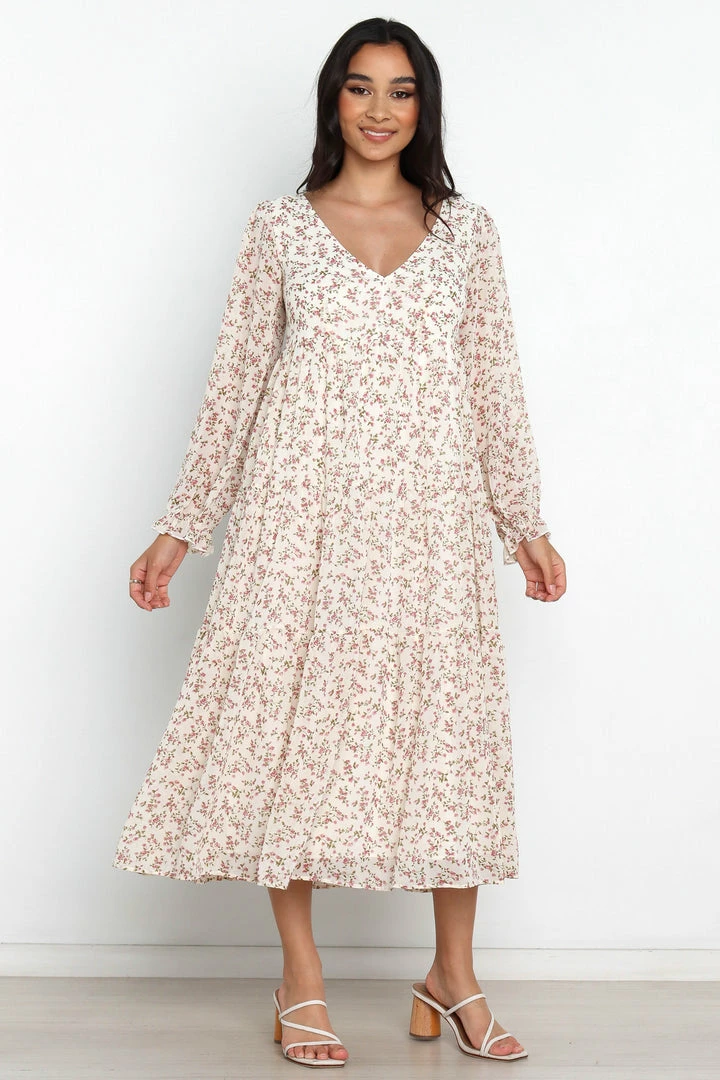 PUP4 Andrea Floral Midi Dress – White Dresses