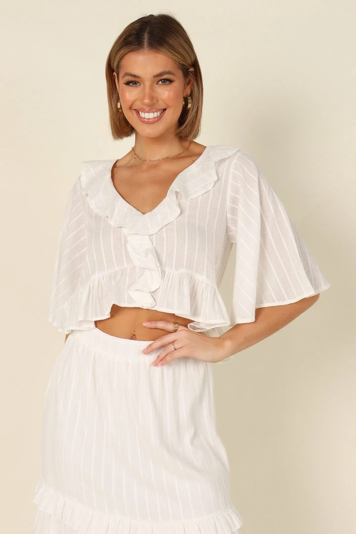 PUP4 For The Bride Sheridan Cropped Ruffle Top – White