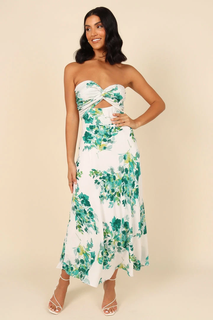 PUP4 Teagan Strapless Midi Dress – Green Floral