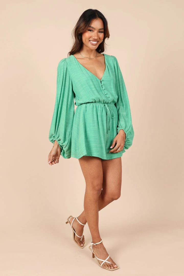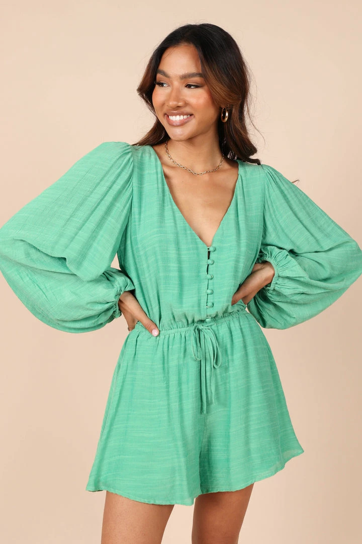 PUP58 Lunetta Long Sleeve Romper – Green
