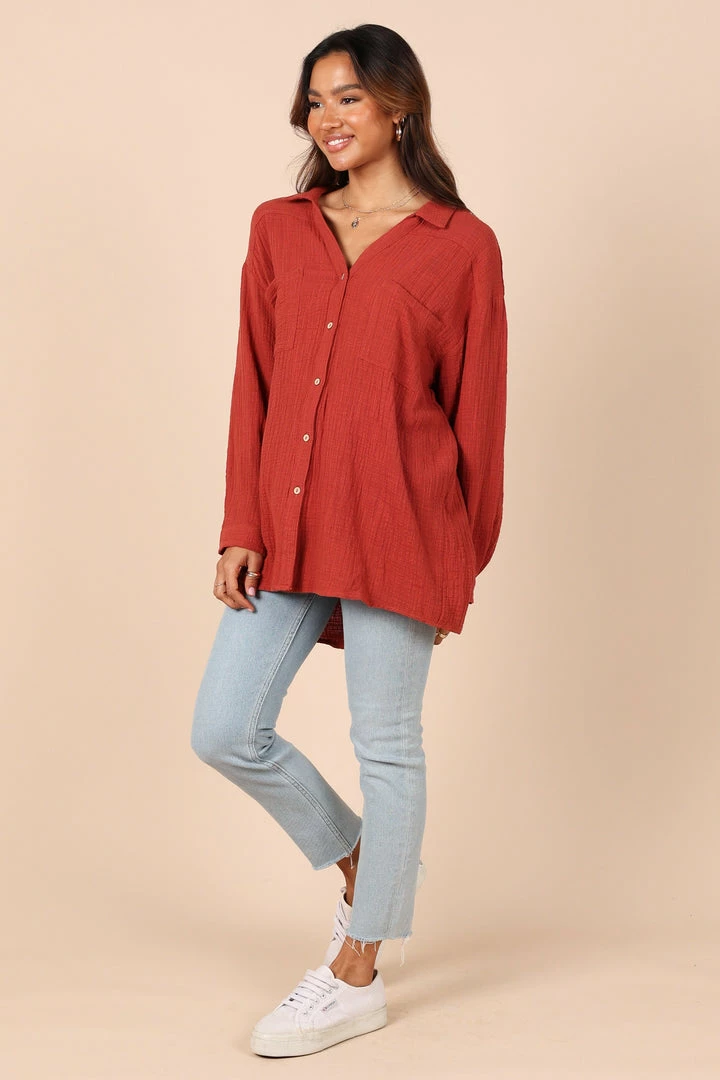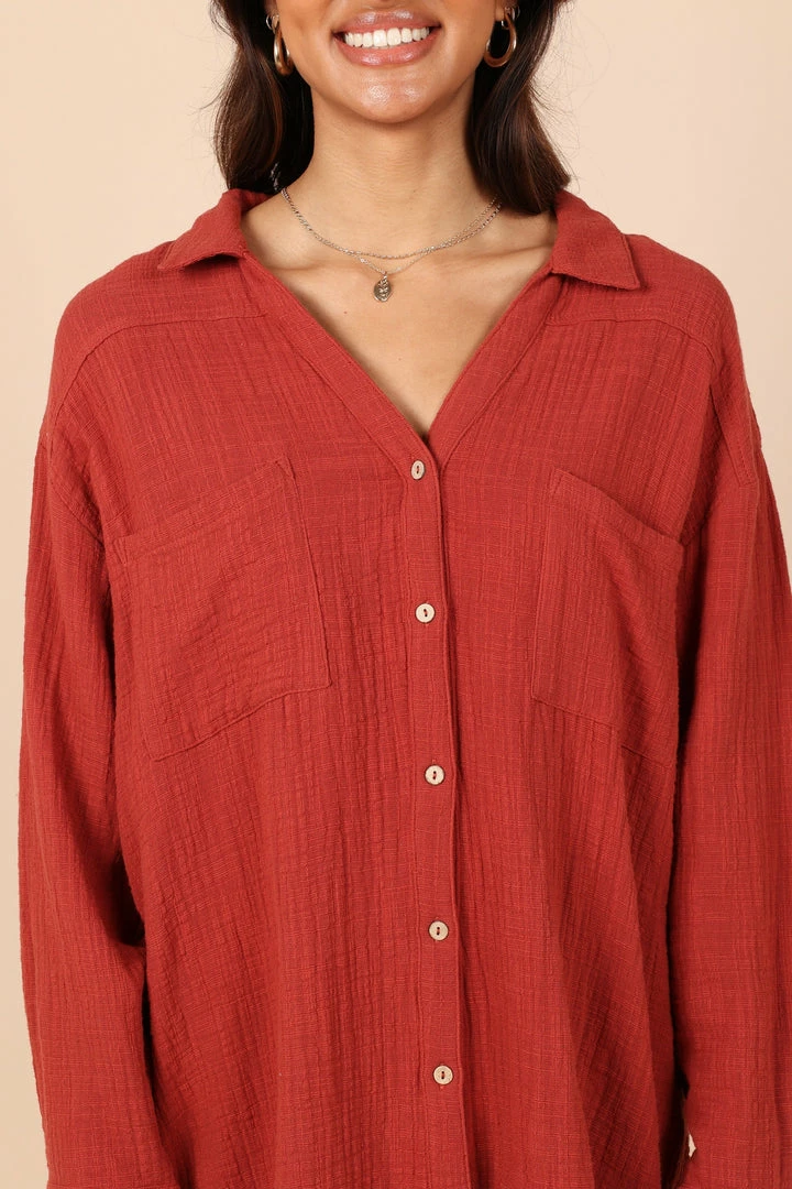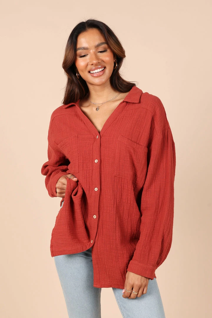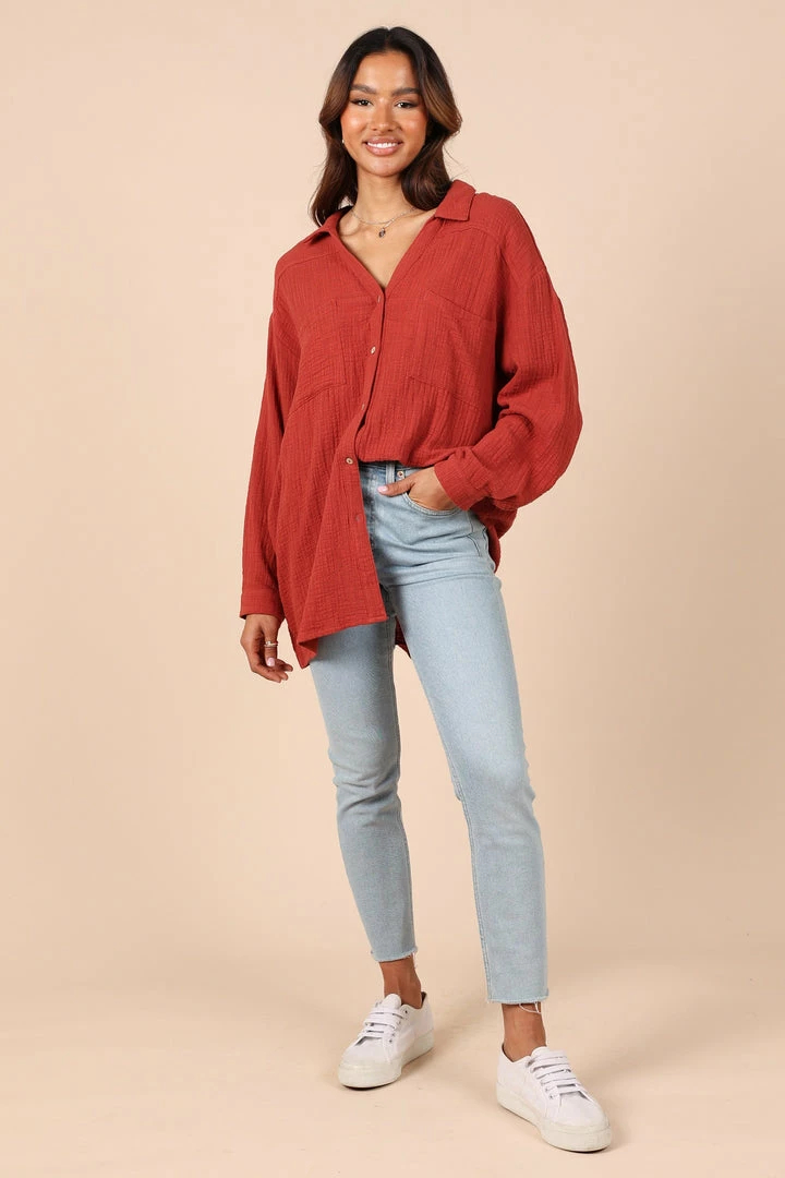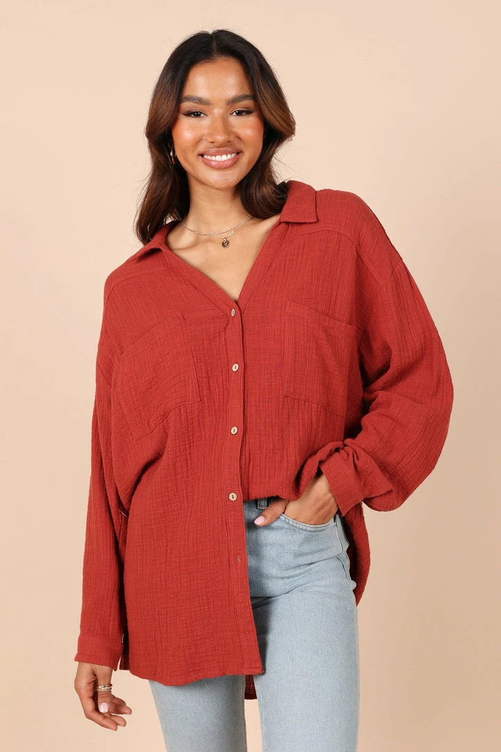PUP8 Bobby Button Down Top – Rust Clothing